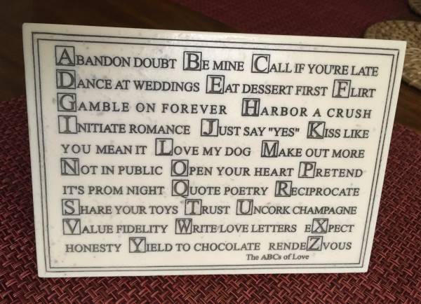 White Marble Plaque Inspirational Size: 7 x 5 x 0.5 “ ABC’s of Love House Parts, Inc
