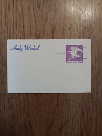 Very Cool Andy Warhol signed in marker postcard with stamps on front and back, no other documentation available.