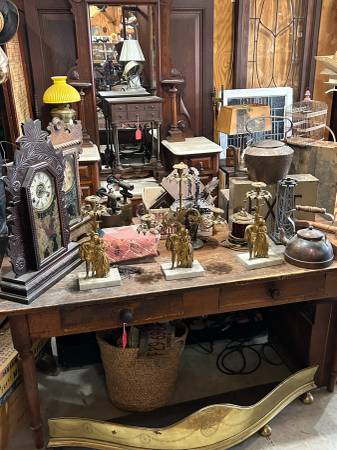 First-time fresh to market antiques for the wholesale trade and retail to the general public – we own it outright – just old fashion real antique buying….and we encourage haggling. 3,500 sq. ft. of antique furniture, early lighting, Early American and Victorian antiques and smalls, architectural, art work, garden iron, folk art, stringed instruments, horns and weird stuff.
