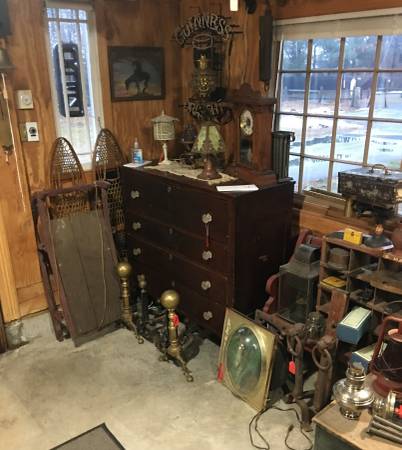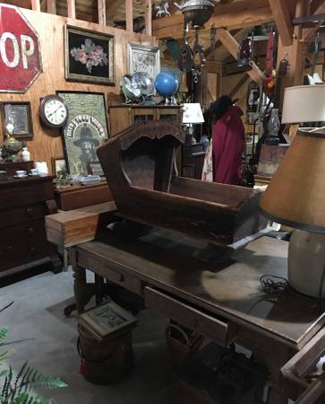 First-time fresh to market antiques for the wholesale trade and retail to the general public – we own it outright – just old fashion real antique buying….and we encourage haggling. 3,500 sq. ft. of antique furniture, early lighting, Early American and Victorian antiques and smalls, architectural, art work, garden iron, folk art, stringed instruments, horns and weird stuff.