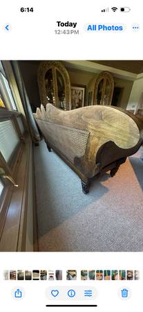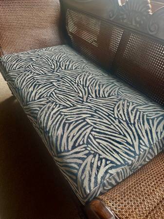 Gorgeous immaculate teak vintage Regency Carved Wood and Hand Caned settee,