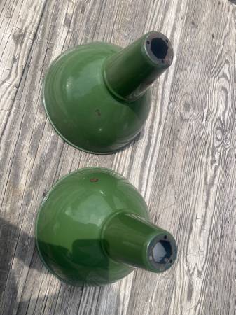 D. Green metal school lampshades circuit 1960s - Measure 20 inches diameter by 12 inches high