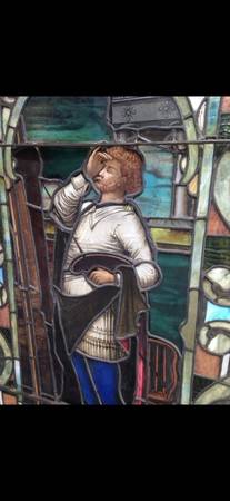 Available for sale is a stunning 19th century Stain-glass work of art depicting an artist working at his easel