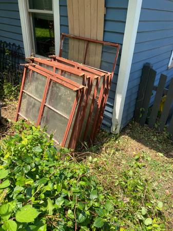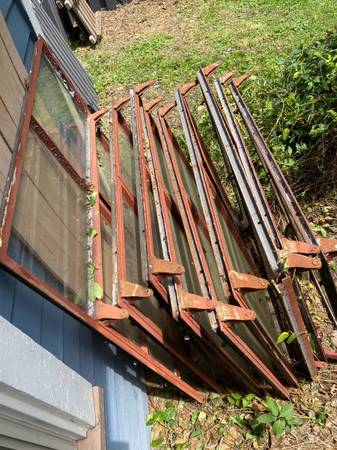 Mid century, modern windows-!! Available for sale is a grouping of mid century, modern vintage industrial metal, casement windows, rescued from an area estate Single pane thickness All original wise...