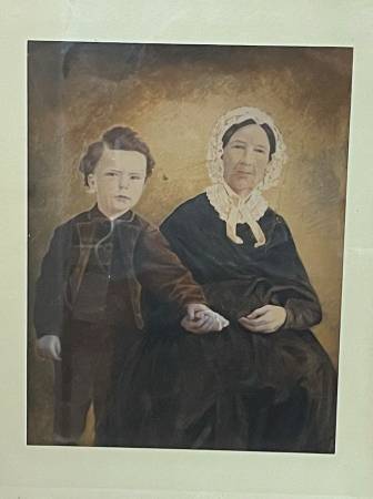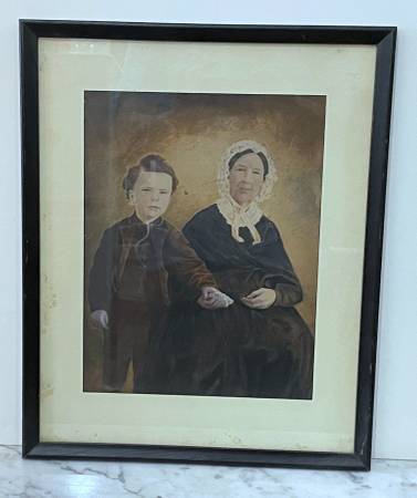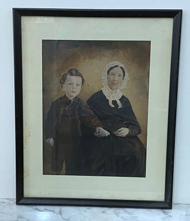 19th CENTURY LARGE HAND PAINTED PHOTOGRAPH OF AN OLD LADY AND CHILD Frame size: 18" x 15" Available for pickup only 78th Street / First Avenue