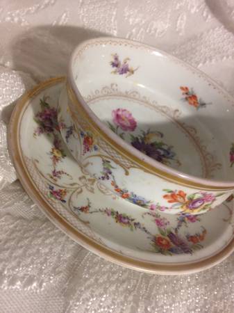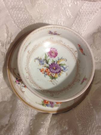 fused together to saucer before fired / all one piece Victorian / Edwardian finger bowl with garlands of flowers gilt with floral painting hand painted 75.00