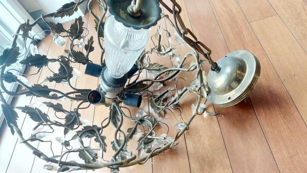 Antique chandelier for sale. 16 inches diameter. Feel free to contact me with any questions. Thanks.