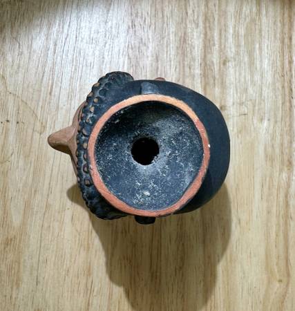 This is a Handmade Perfume Bottle, made out of clay. My research tells me it was made in the 1920s, most likely as a replica of "Terracotta aryballos (perfume bottle) in the shape of a woman's head" that can be seen at the Metropolitan Museum of Art.