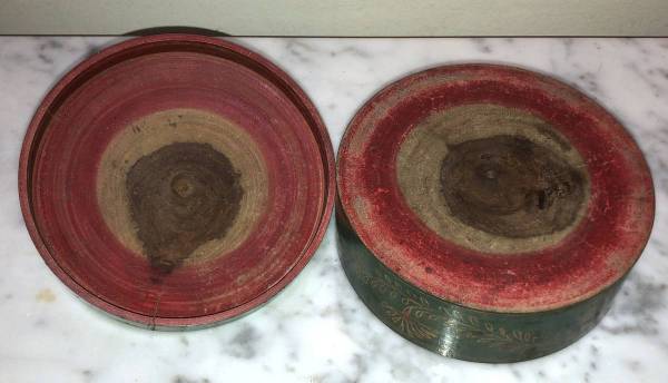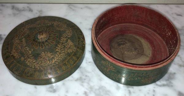 ANTIQUE HAND PAINTED WOODEN LACQUERWARE ROUND BOX FROM INDIA -...