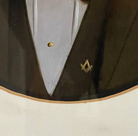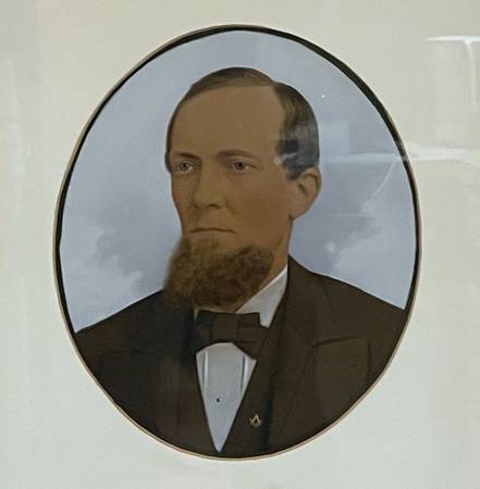 ANTIQUE HAND PAINTED PHOTOGRAPH OF A GENTLEMAN WEARING A MASONIC PIN...