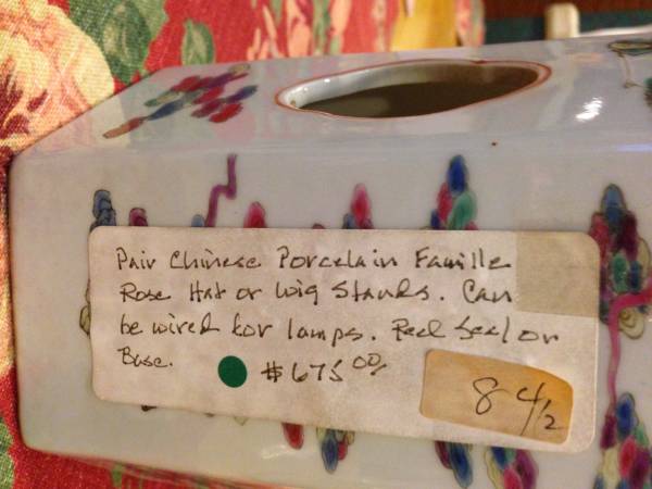 They are hand-painted hat stands (also known as wig stands) $ 750. (I paid $ 675. each, 35 years ago).