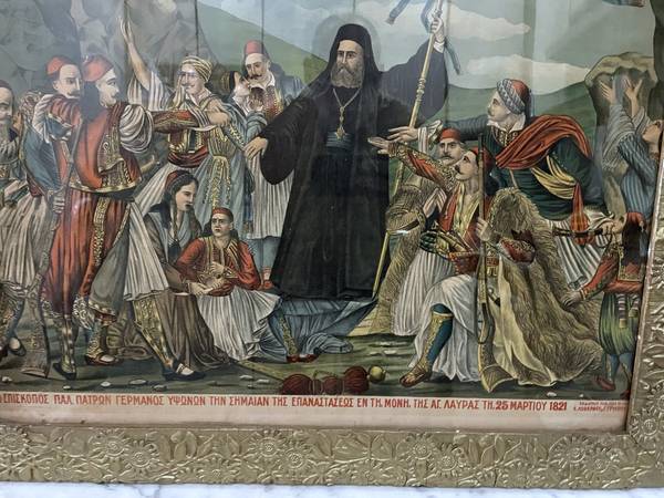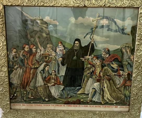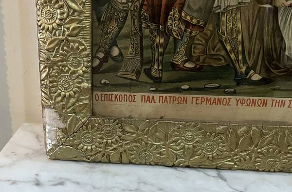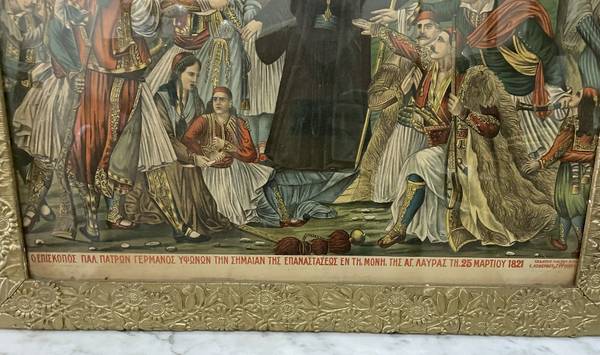 ANTIQUE PRINT RELATED TO THE GREEK REVOLUTION OF 1821 IN GORGEOUS OLD FLORAL FRAME Beautiful historical image in solid antique frame Frame size: 28" x 24" Available for pickup only (78th Street /...
