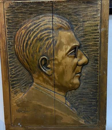 ANTIQUE SOLID WOOD PANEL CARVING OF MALE PROFILE SIGNED "FANELLI" This piece is super cool and heavy Size: 27" 1/2 x 18" x 2" thick Available for pickup only (78th Street / First Avenue)