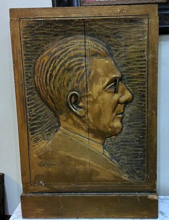 ANTIQUE SOLID WOOD PANEL CARVING OF MALE PROFILE SIGNED "FANELLI" -...