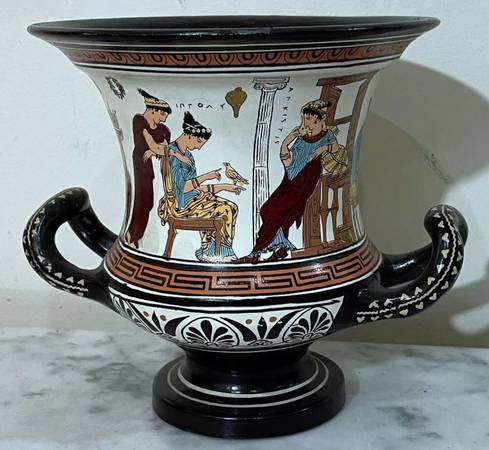 BEAUTIFUL VINTAGE SIGNED HAND PAINTED GREEK POTTERY DECORATIVE VASE