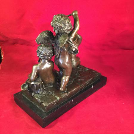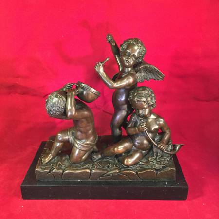 " French Bronze Statue Trio Cherubs Putti Signed Nick very nice details. size 10 1/2 inches High x 11 1/2 Long x 6 1/2 Deep. "