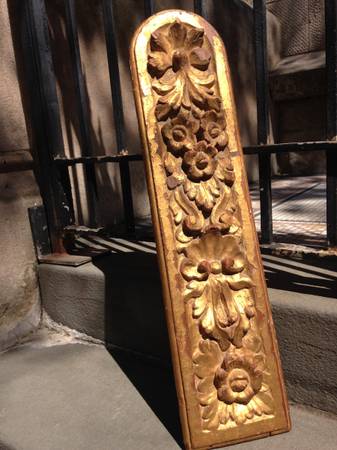 18th/19th century possibly earlier carved gilt architectural element of a swag of flowers also a pair Medusa Applique Carved front and back! west 27 street/ 7 Avenue Manhattan