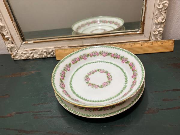 These gorgeous antique porcelain china pieces, in a lovely rose pattern, from WILLIAM GUERIN & CO. / LIMOGES, FRANCE date from the late 1800s to 1930s. Famous for elegant, decorative designs and fine quality china, these pieces would make a stunning addition to any table setting.