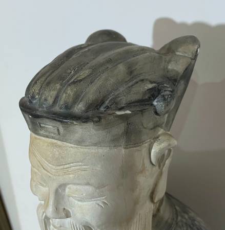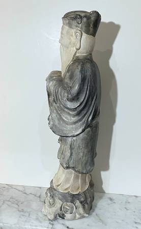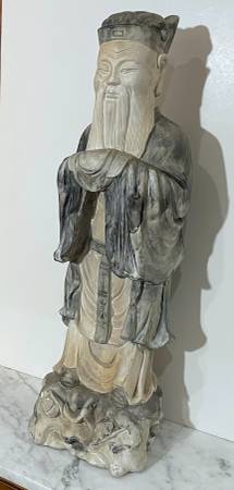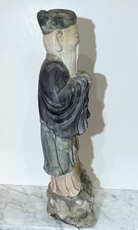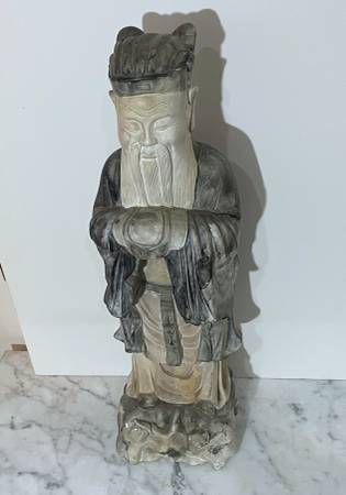 GORGEOUS MONUMENTAL VINTAGE CHINESE TWO TONE PLASTER STATUE OF A BEARDED WISE MAN Size: 24" tall 7" wide 6" deep CONDITION: Some paint loss as shown in pictures, otherwise in good condition. No...