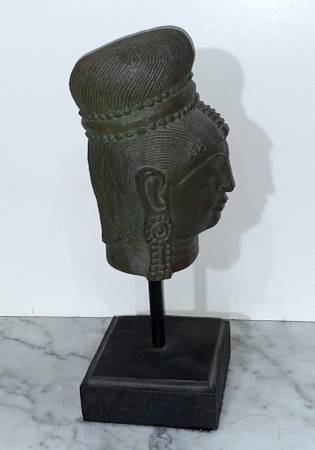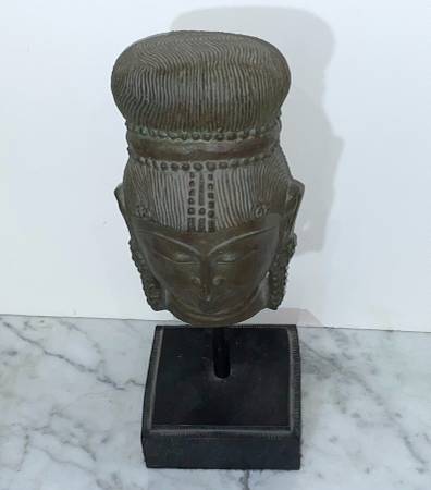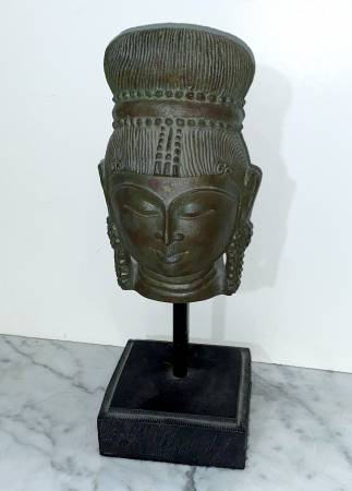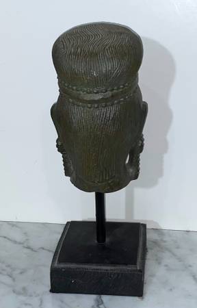 GORGEOUS SOUTHEAST ASIAN GRAY COLOR STATUE OF A BUDDHIST DEITY ON STAND Head (without stand): 7" 2/8 tall 4" 5/8 wide 4" 1/2 deep 13" tall with stand Condition: In overall good vintage condition. I...