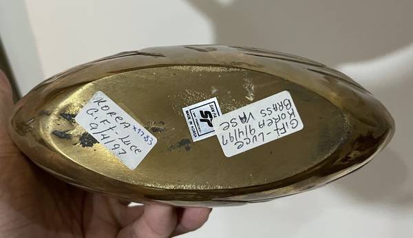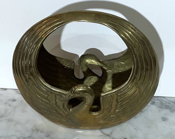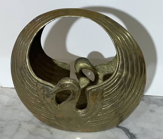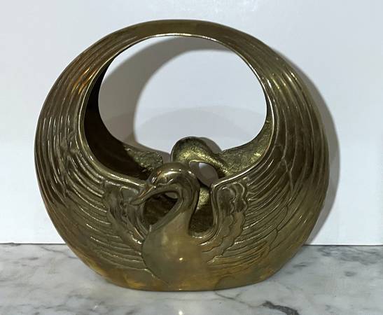 GORGEOUS VINTAGE KOREAN BRASS VASE DEPICTING A SWANN WITH OPEN WINGS Size: 7" 1/2 tall 8" wide 3" 1/2 deep Condition: Minor surface wear and dirt due to its age, otherwise in very good vintage...