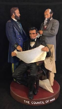 Listing today a rare variant “A” of the Council of War by sculptor John Rogers. Patented in 1868 signed John Rogers New York. The group is painted in multi-colors and appears structurely sound. Of all the Councils of War produced in 3 different variants ….variant “A” would make up only 7-10% of the total produced making this piece highly desirable. Edwin Stanton’s hands wiping his glasses are positioned behind President Lincoln’s head making this variant “A” the 1st Council manufactured. Pick-up only on this group located in Worcester/Boston Massachusetts…..COD $3,499.95 or best offer. Other Rogers Groups currently being offered please inquire. Thanks for looking.