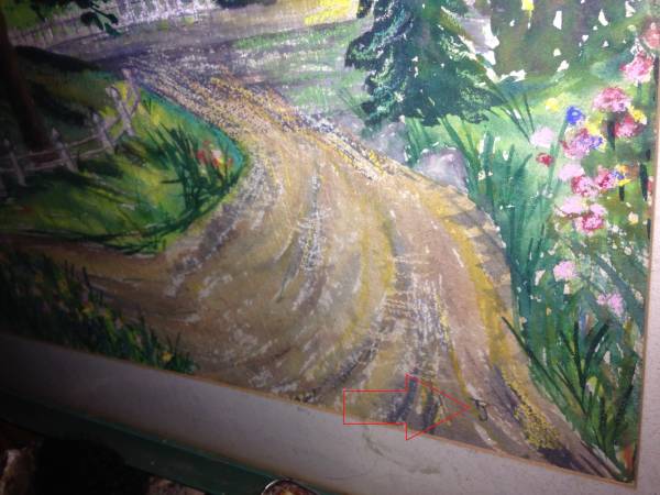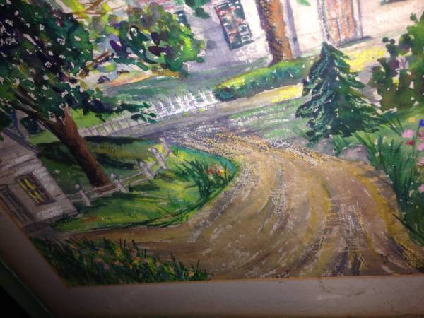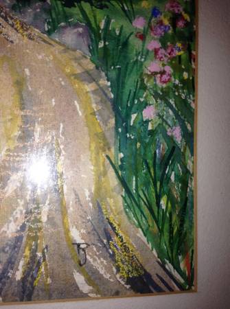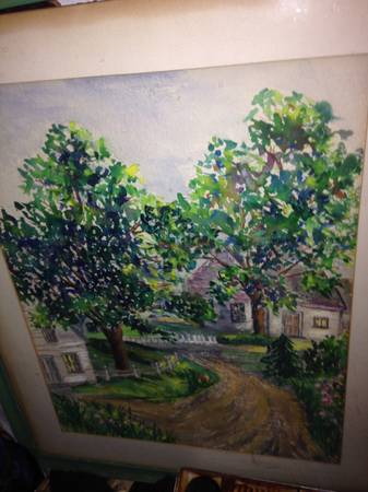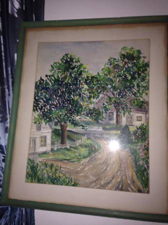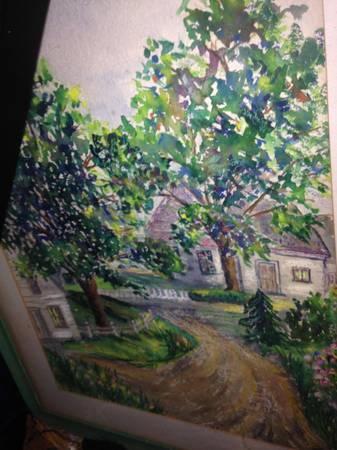 bought Tepper Auction in 2010, attributed to Elizabeth Schleussner this has been kept behing airtight glass, and out of sunlight for over 70 years large Watercolor of 2 houses and trees i was hoping...