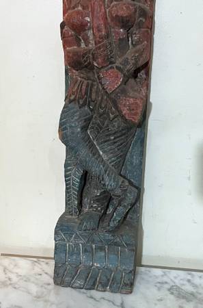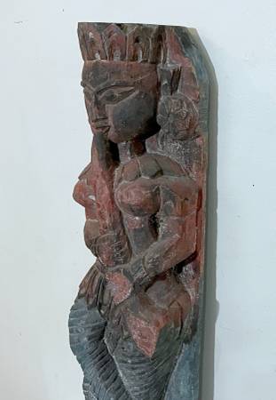 VINTAGE LARGE THAI BUDDHIST PAINTED WOOD STATUE OF DEITY PLAYING AN INSTRUMENT