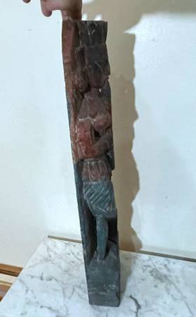 Surface wear, paint loss and scratches due to its age, as show in pictures. No splits. Base is not even and statue doesn't stand up by itself.