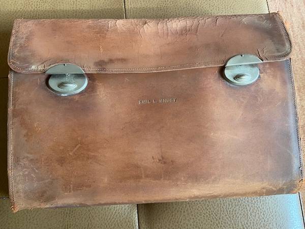 The travel kit belonged to Emil Ludwig Fredrich Knust and is engraved "Emil L. Knust." Knust was born in Hanover, Germany, on Sept 11, 1879, so we assume this case was used in the late 1800s and very early 1900s.