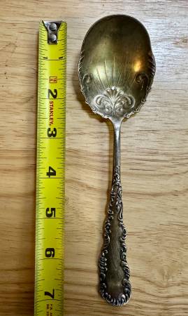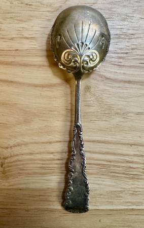 An elegant antique serving spoon from my mom's eclectic collection of rare serving utensils. Beautiful ornate handle flows into a wonderfully embossed serving spoon. Unique and collectible. This well used WM Rogers silverplate serving spoon from the early 1900's. No doubt it was once considered the fancy silverware by some long since deceased family, to be used only on special occasions. How can you not be charmed?
