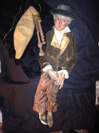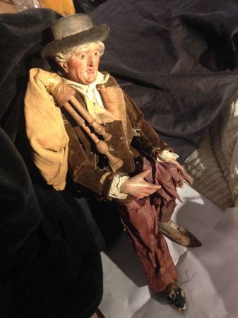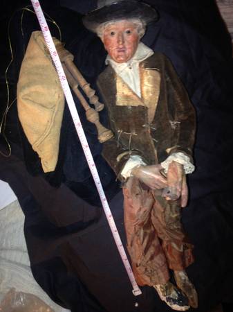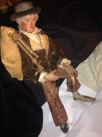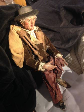 entirely carved out of wood, glass eyed, orig clothes 500 Bag Pipe Player Neapolitan creche Figurine