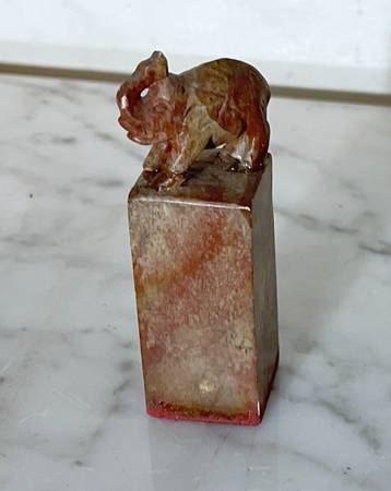 OLD CHINESE SOAPSTONE SEAL WITH ELEPHANT ON TOP 3" x 1" x 1" Available for pickup only 78th Street / First Avenue