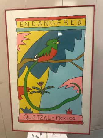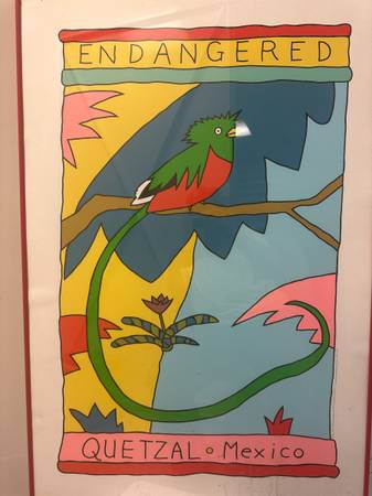 This is a special poster that was part of a high-quality series of posters called Endangered created over 30 years ago to celebrate and raise money and awareness to help save endangered species. This was the capstone piece with excellent color and great artistic skill in the drawing of the Quetzal and the artist's Impressionistic treatment of the background designed to highlight the central character