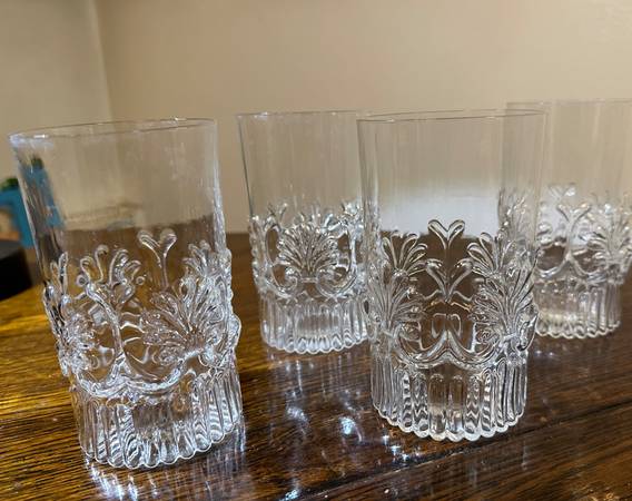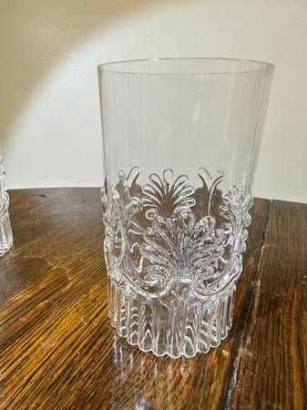 Gorgeous! Stylish! Vintage! From the ad: "Elevate your drinkware collection with these stunning vintage Pilgrim Glass tumblers. Crafted from high-quality glass, these 15 oz tumblers feature a beautiful Adam pattern, adding a touch of elegance to any table setting. With a height of 5.25" and a diameter of 2.9", this tumbler is perfect for all occasions, whether it be a formal dinner party or a casual get-together with friends.