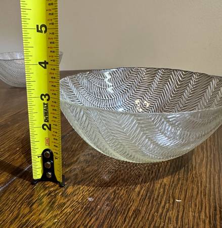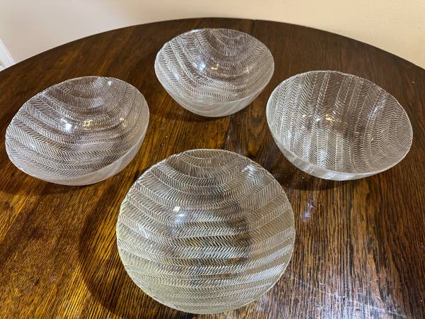 Set of 4 Vintage Textured Glass Bowls. These are pretty cool! The outside of the bowls are ribbed, the inside smooth. Great condition. They look spectacular. Great for salads, soups, cereal, ice cream, etc. Someone on Etsy is selling them for $20 a piece. I'm selling a set of 4 for $50. Even better, I've got two sets of these wonderful vintage bowls.
