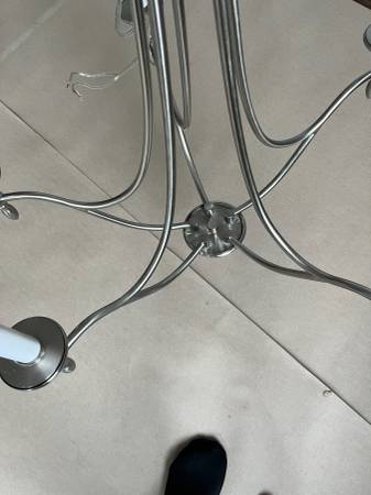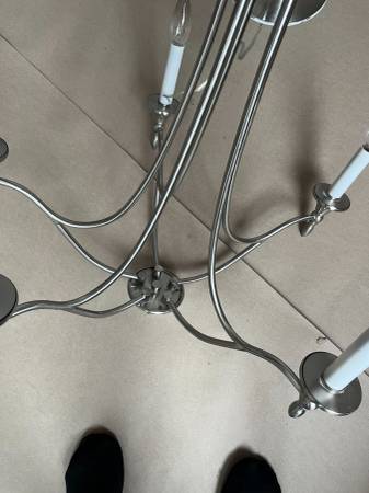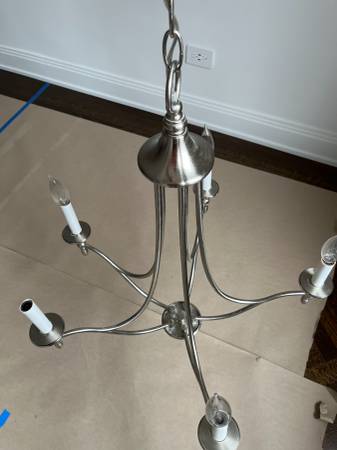 Designed for versatile placement in various living spaces, the Herndon chandelier blends contemporary style with transitional and traditional inspirations. Measuring 27.5 inches in height and 21 inches in width, this fixture offers a balanced presence suitable for dining rooms, foyers, bedrooms, and more. Its satin nickel finish, reminiscent of pewter, provides a timeless aesthetic that complements a wide range of interior designs.