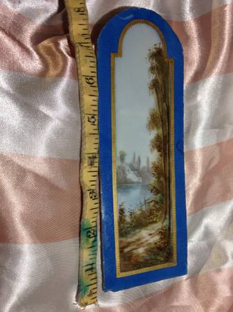 Landscape painting on Porcelain, Sevres with gilt border, and blue 100 West 27th st 7 Ave Manhattan