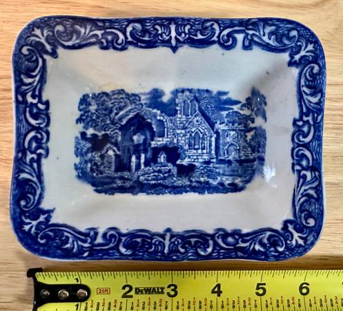 This lovely little rectangular Geo & Sons Abbeyware "Shredded Wheat Dish" porcelain bowl is part of a series of bowls made for Shredded Wheat cereal in England in the 1920s. This particular bowl might be a bit small for your morning cereal, but would make a nice condiment dish.
