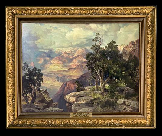 Made for the Atchison Topeka & Santa Fe Railroad, American West, antique print, 19th century art.