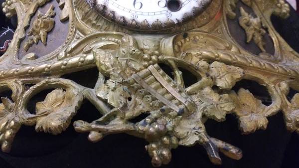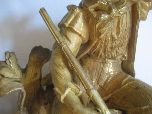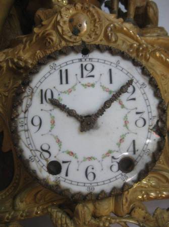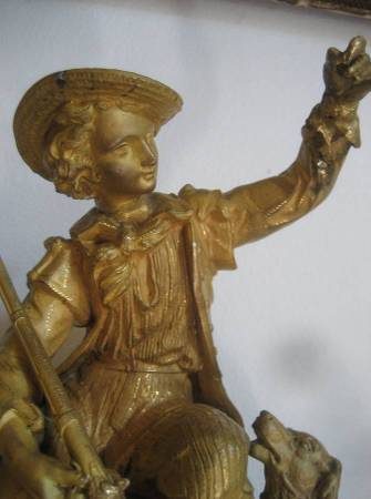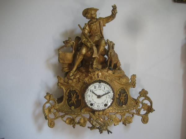 Antique 19th century Hunter/Hound porcelain and gilt clock width: 17" across bottom section x 16" height, mounts to wall