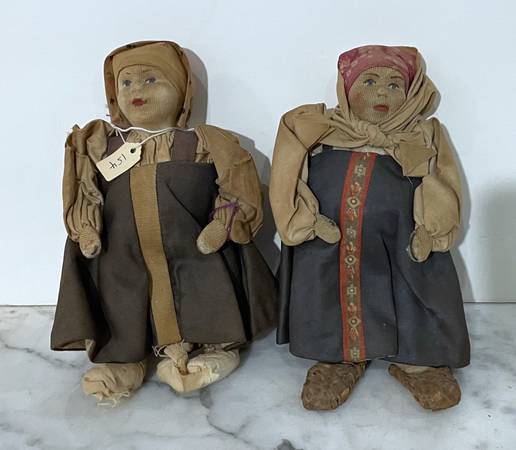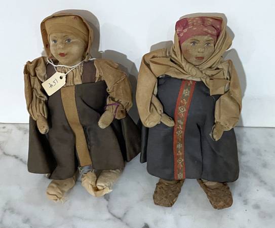 TWO (2) BEAUTIFUL ANTIQUE SOVIET UNION DOLLS WEARING TRADITIONAL CLOTHES Both for $85 Each (Approx.): 7" 1/2 tall 4" wide 2" deep Condition: Some surface dirt and wear due to their age, otherwise in...