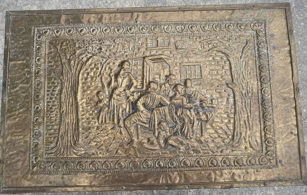Vintage Embossed Brass Decorative Log Box for Sale.