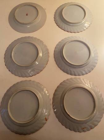 6 dessert plates, 7.25"D, non-matched. 1920’s Antique Japanese Chinoiserie Hand Painted Traditional Geisha Girl Pattern. Local pickup