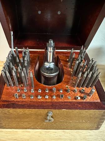 This is a Kendrick & Davis Vintage Watchmaker Staking Tool Set No. 600. From my dad's collection of watchmakers' tools. Dad was an amateur watch/clock repairman. He used to buy old clocks and watches at flea markets, repair them, and then sell them. I am slowly selling off his collection of watches, clocks, and tools. I am selling this set as is. I personally know nothing regarding how complete it is, or what it may be missing. I priced this based on what others are selling similar products for on eBay.