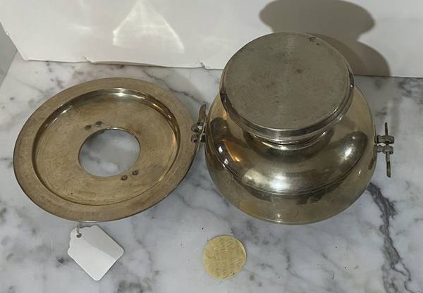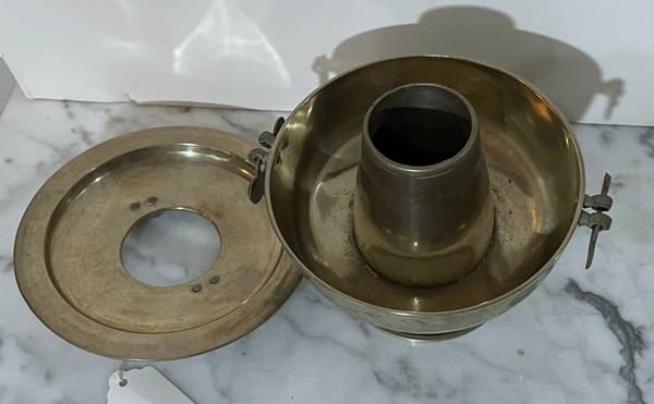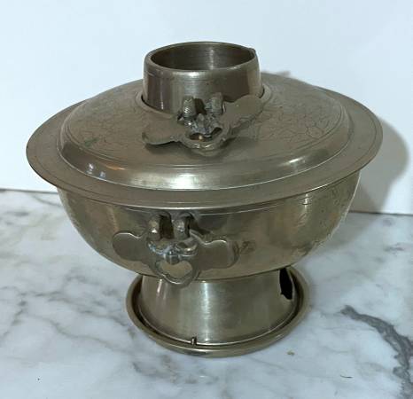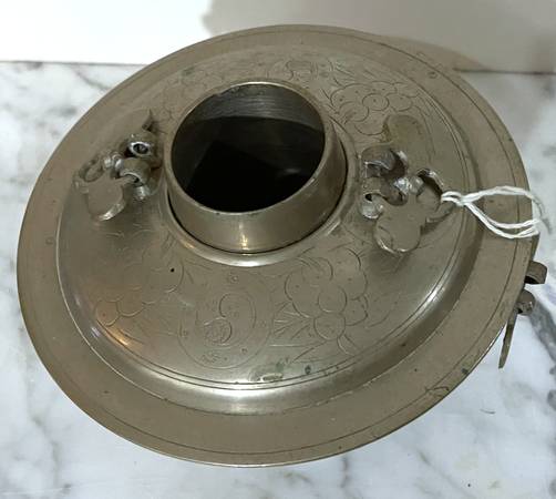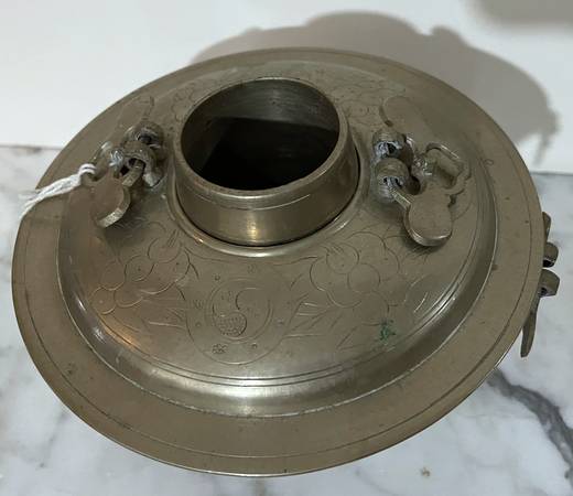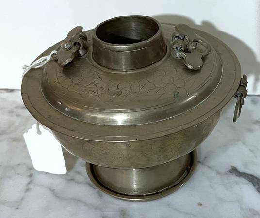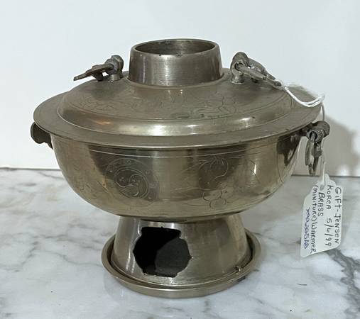 VINTAGE KOREAN BRASS WARMER ADORNED WITH TRADITIONAL ETCHED PATTERNS...