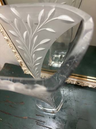 Vintage SHANNON CRYSTAL BY GODINGER 14" Frosted Leaf Vase - antiques...