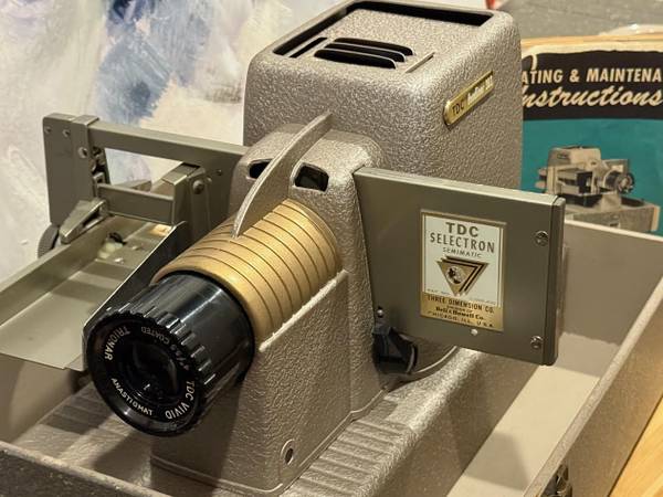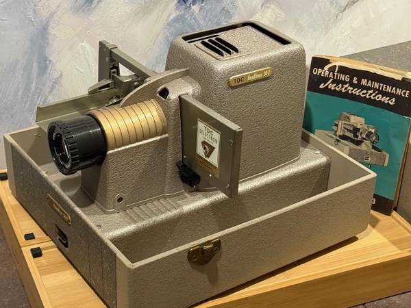 Vintage TDC Selectron Headliner 303 (35mm) Slide Projector w/ Original Case for Sale.