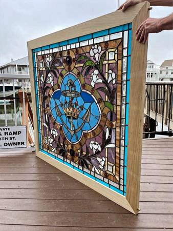 Vintage 6’x4’ Stained Jeweled Glass window TwoOneFive-317-5300 “Estate Sale”