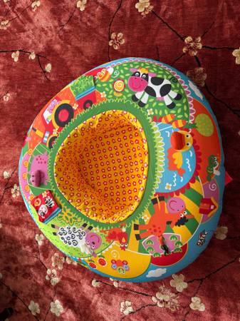 Galt Playnest and Gym activity center. Inflatable, fabric covered. Fabric is machine washable. Here is the Amazon link to the product:...